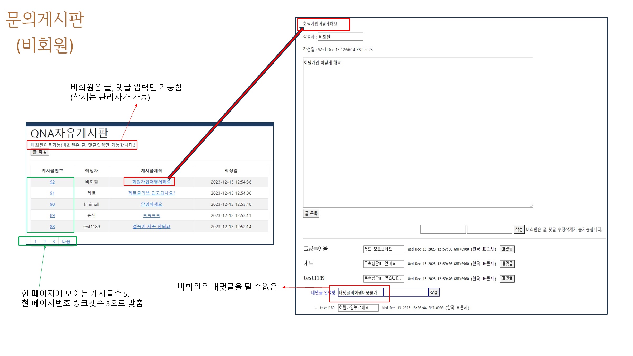 페이징처리는 한페이지당 게시글5개씩 나오게 했다.
