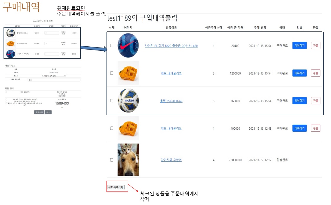 결제페이지에서 상품을 결제하면 구매내역페이지를 띄운다.