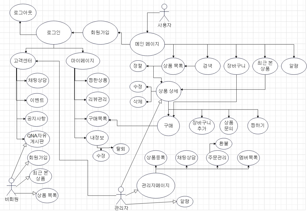 어떤 식으로 진행될지 이용자랑 관리자입장에서 그려보았다. 이렇게 그려놓으면 뭘 만들어야 할지 큰 그림이 그려진다.